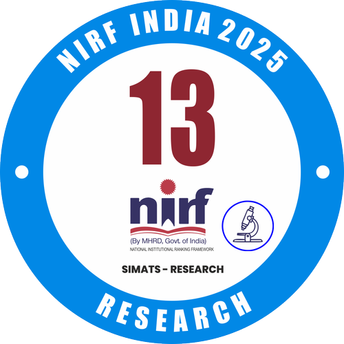 NIRF 2025: SIMATS has been ranked 13th in India under the Research Category released by the Government of India.